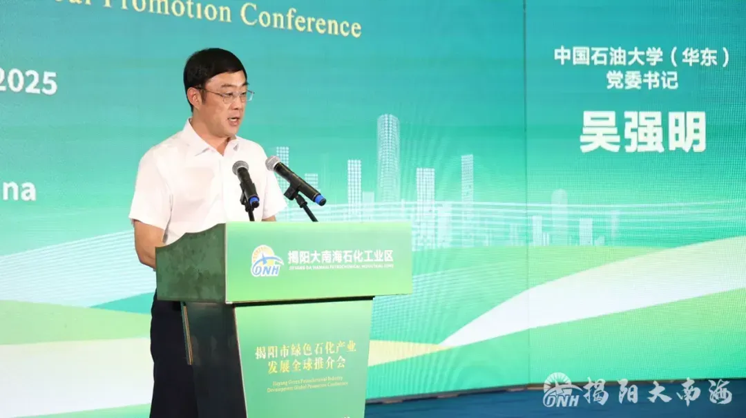 中国石油大学(华东)党委书记吴强明充分肯定揭阳绿色石化产业发展成果,表示将推动中国石油大学与揭阳持续强化协同联动、深化校地企融合发展,为揭阳发展新质生产力、加快构建现代化产业体系提供坚强有力的人才和智力支撑。