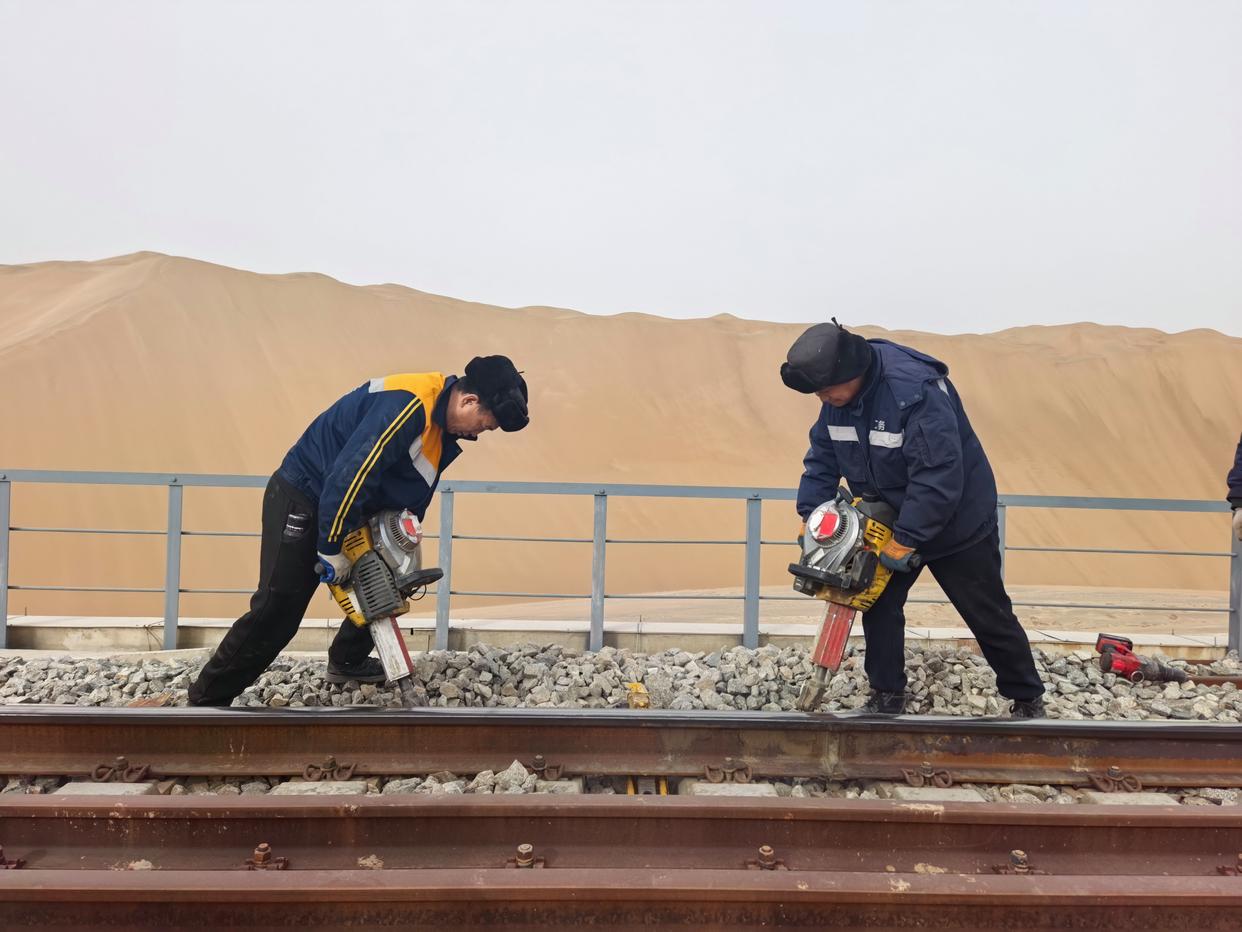 队员们继续投入作业,轰鸣声也再次响起。郭勇看着时间,提醒队员,还有40分钟。敦煌铁路连接兰新铁路与青藏铁路,往来运送着煤炭、食盐、化肥等物资。通过这条路,新疆哈密的电煤可快速送达西藏阿里地区,保障高原居民温暖过冬。目前,铁路满负荷运行,维修任务重且时间紧。